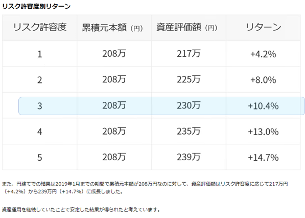 私の場合は 【リスク 3】 なのでリターンは【+10.4% 】の運用になるはずです!?