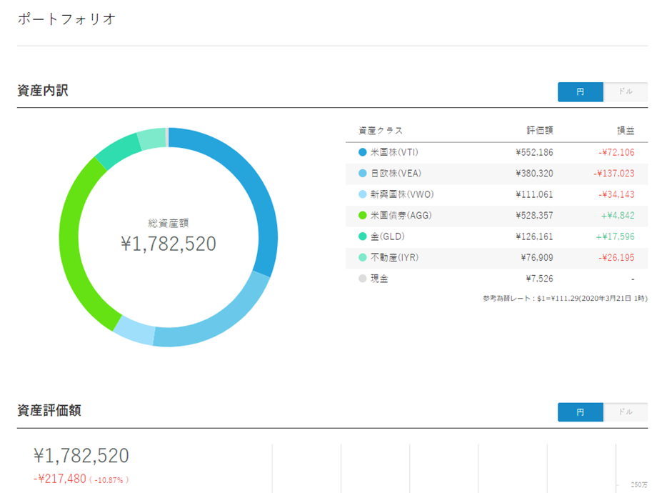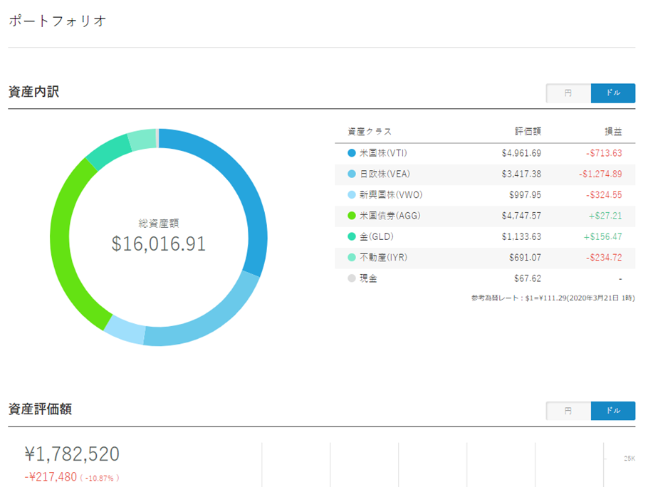 円だと -10.87%、公開されている情報 +10.4 % からかなりダウン。COVID-19 のせいです。。