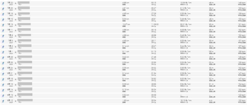さらに約 2 か月後、2020 年 7 月 18 日 5 Km ほど走った記録が これ ☟ (Garmin の腕時計で測った記録です)。