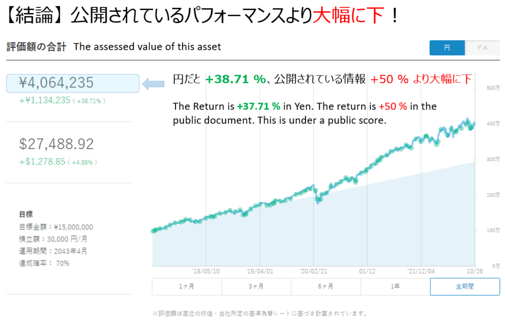 (以前はパフォーマンスの結果が簡潔にまとめられていましたが、開始の時期によってリターンが大きく変わるようになり、それに伴いパフォーマンスの表記も変わりました)